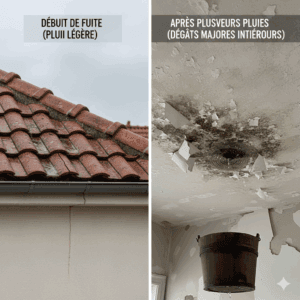 Fuite eau toit : saviez‑vous qu’une petite infiltration peut, après quelques épisodes de pluie, doubler les dégâts intérieurs si elle