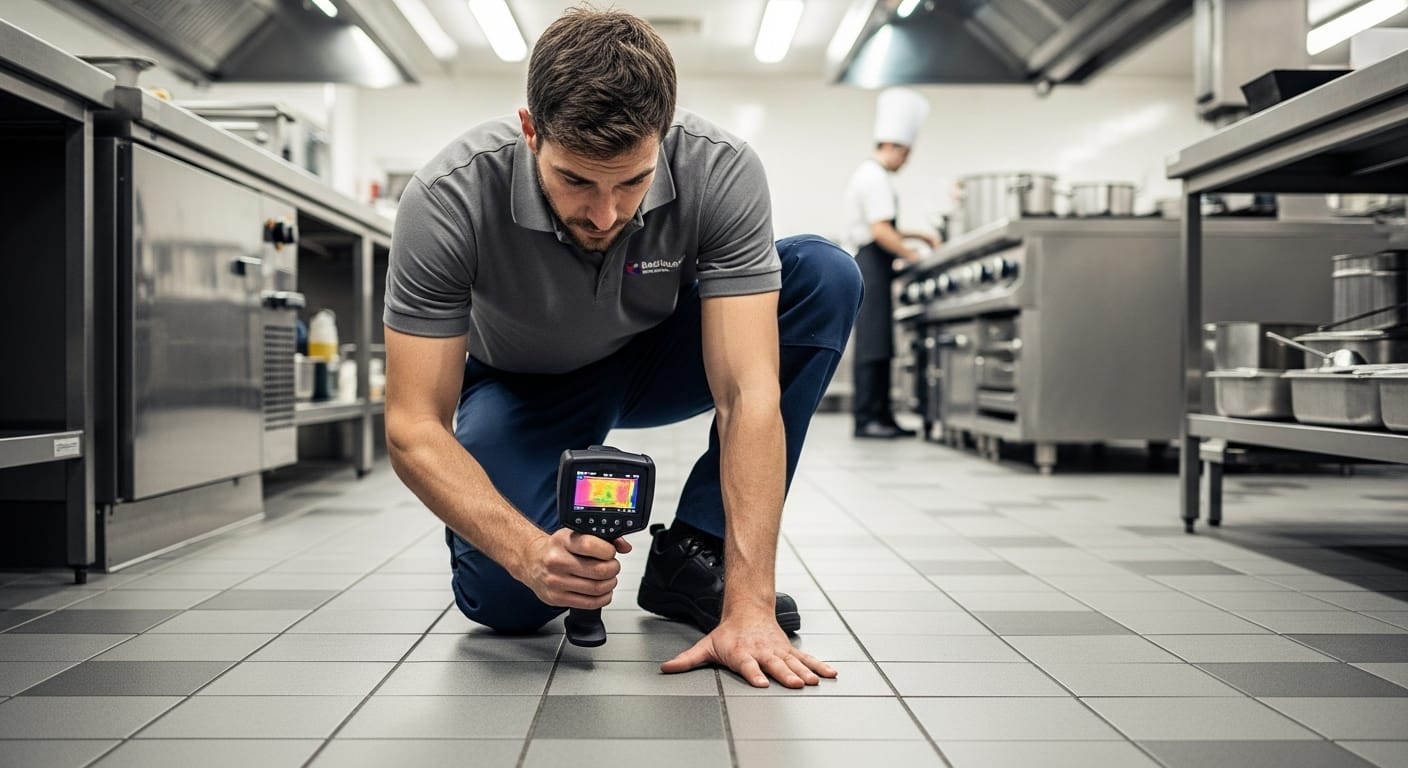 Circuits de chauffage (radiateurs, planchers chauffants), dalles et cloisons tièdes, toitures-terrasses, façades après fortes pluies. En B2B, elle excelle pour balayer rapidement bureaux, boutiques et réserves.